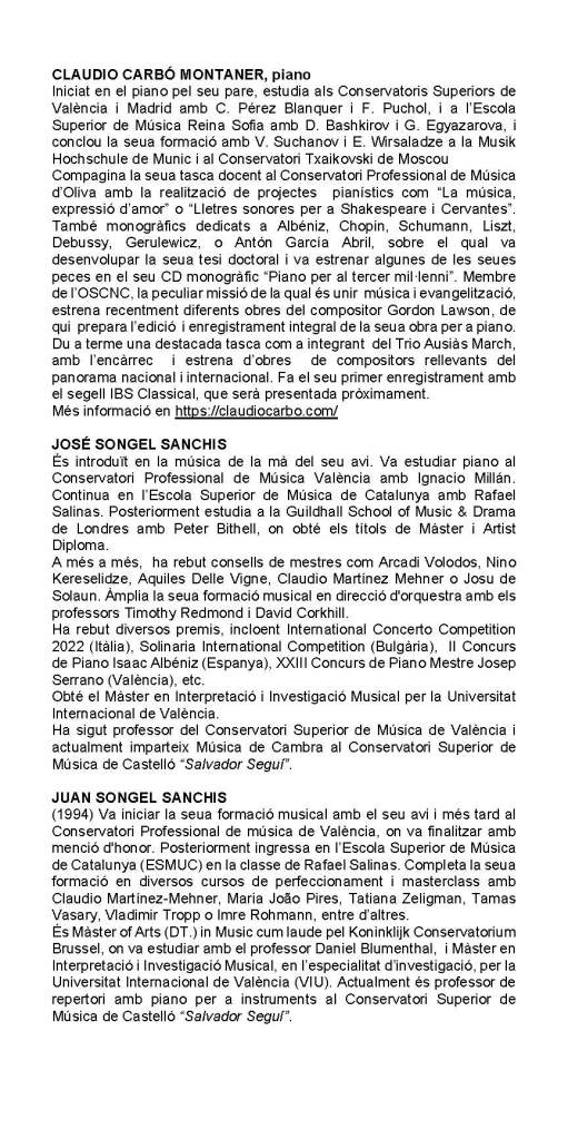 Jueves 3 de noviembre: Conciertos para teclado y orquesta. Teatre Principal, Valencia.