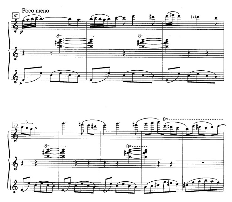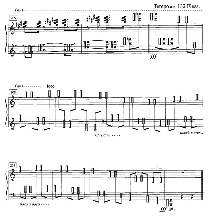 Tuve el gusto de interpretar una pieza suya para piano, Jaén 2008, donde explora diferentes sonoridades a modo de texturas referidas a la diversidad de registros y matices sonoros a lo largo de todo el teclado.
