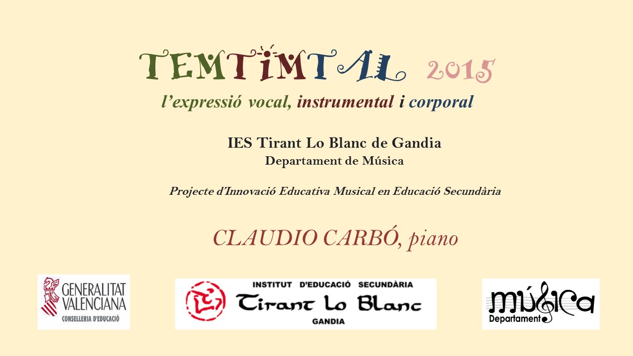 Diapositiva1 Posted on 18 mayo, 201518 mayo, 2015 by Claudio Carbó, piano Publicado por Claudio Carbó, piano Pianista y profesor de piano. Ver todas las entradas de Claudio Carbó, piano