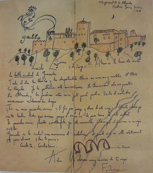 CARTA QUE FEDERICO GARCÍA LORCA ESCRIBE A JORGE ZALAMEA, poeta colombiano, en septiembre de 1928 con membrete de la Revista Gallo que apareció en Granada impulsada por el propio Federico.