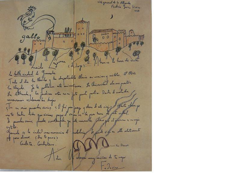 CARTA QUE FEDERICO GARCÍA LORCA ESCRIBE A JORGE ZALAMEA, poeta colombiano, en septiembre de 1928 con membrete de la Revista Gallo que apareció en Granada impulsada por el propio Federico.