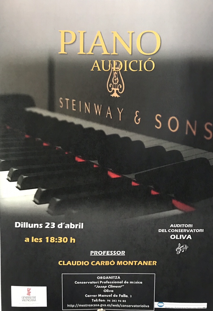 Audició de Piano : Dimarts 4 d’abril de 2023, 18:00h