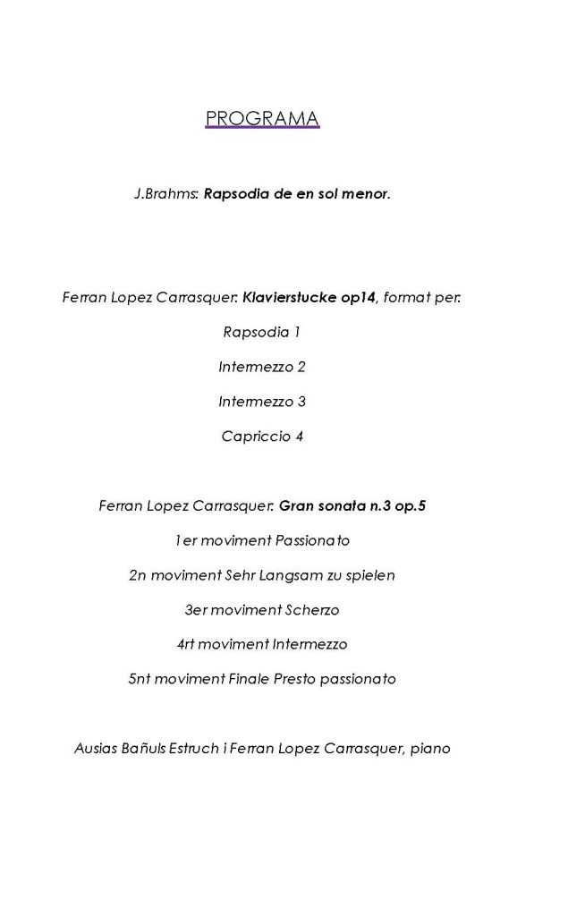 Ferran López Carrasquer i Ausias Bañuls Estruch, piano.