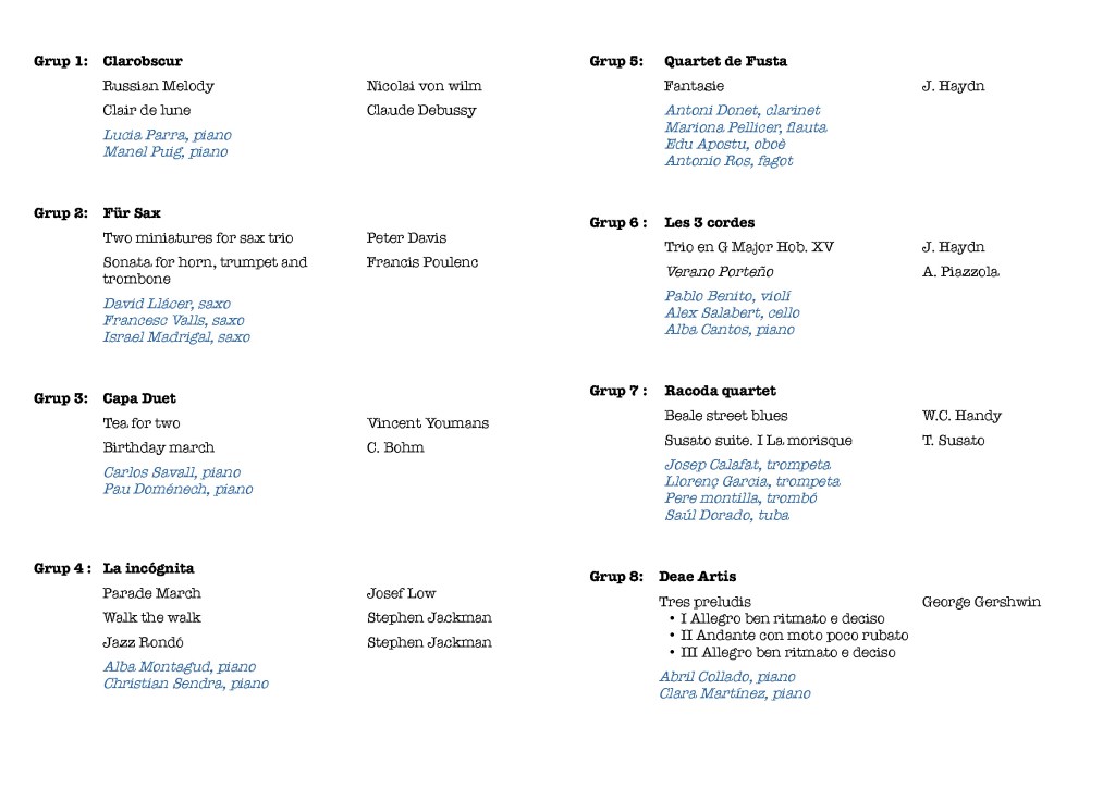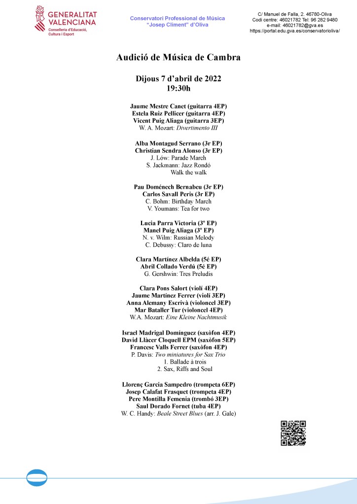 Audició de Música de Cambra, 7.4.22, 19:30h.