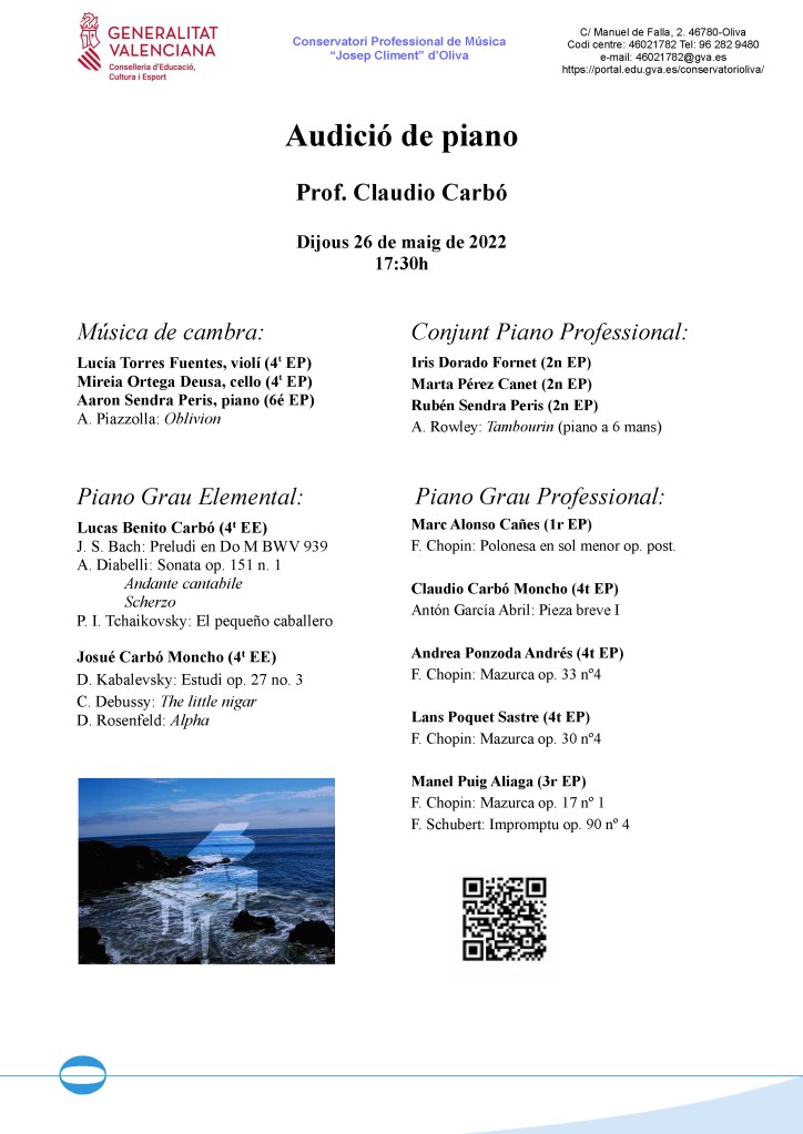 Audició de piano, 26.5.22, 17:30h.