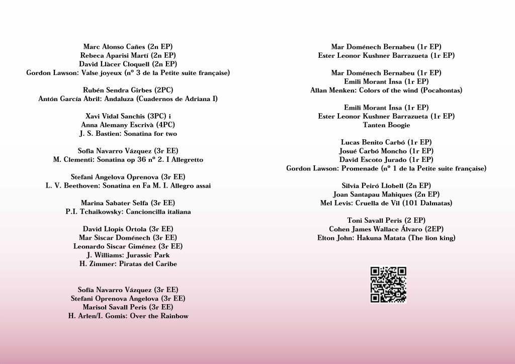 Audició de piano, 1 de juny de 2023, 19:15h