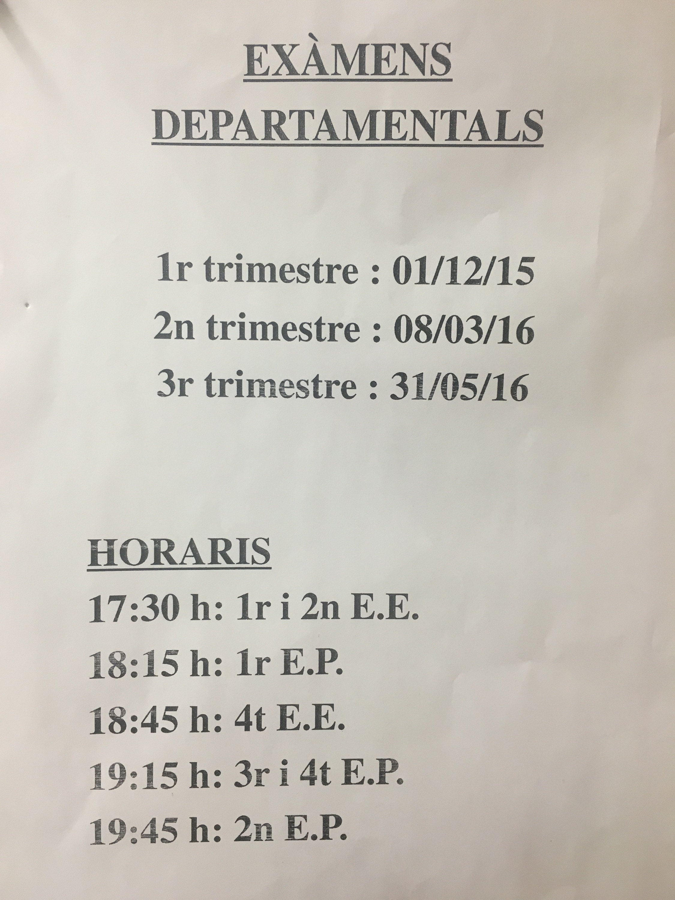 Recordad los horarios del examen departamental de piano que se realizará mañana, martes 312 de mayo, a partir de las 17:30 en el auditorio del Conservatorio.