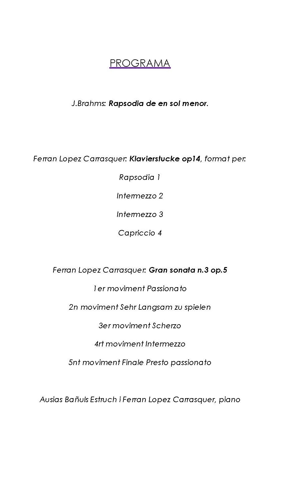 Ferran López Carrasquer i Ausias Bañuls Estruch, piano.
