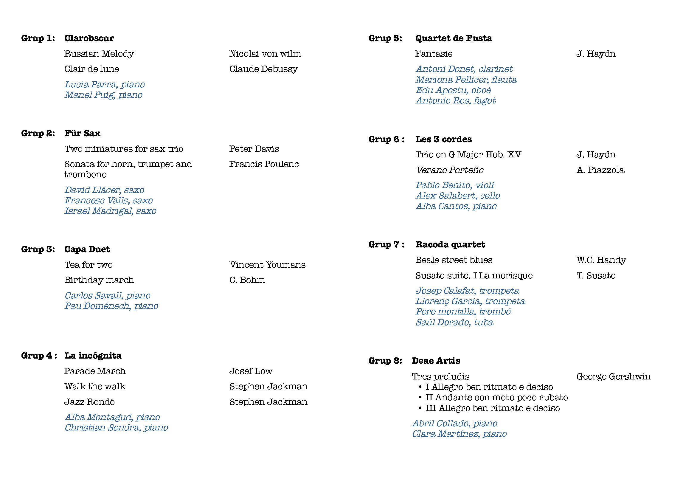 Audició de Cambra : Dimarts 31 de gener de 2023, 18:30h