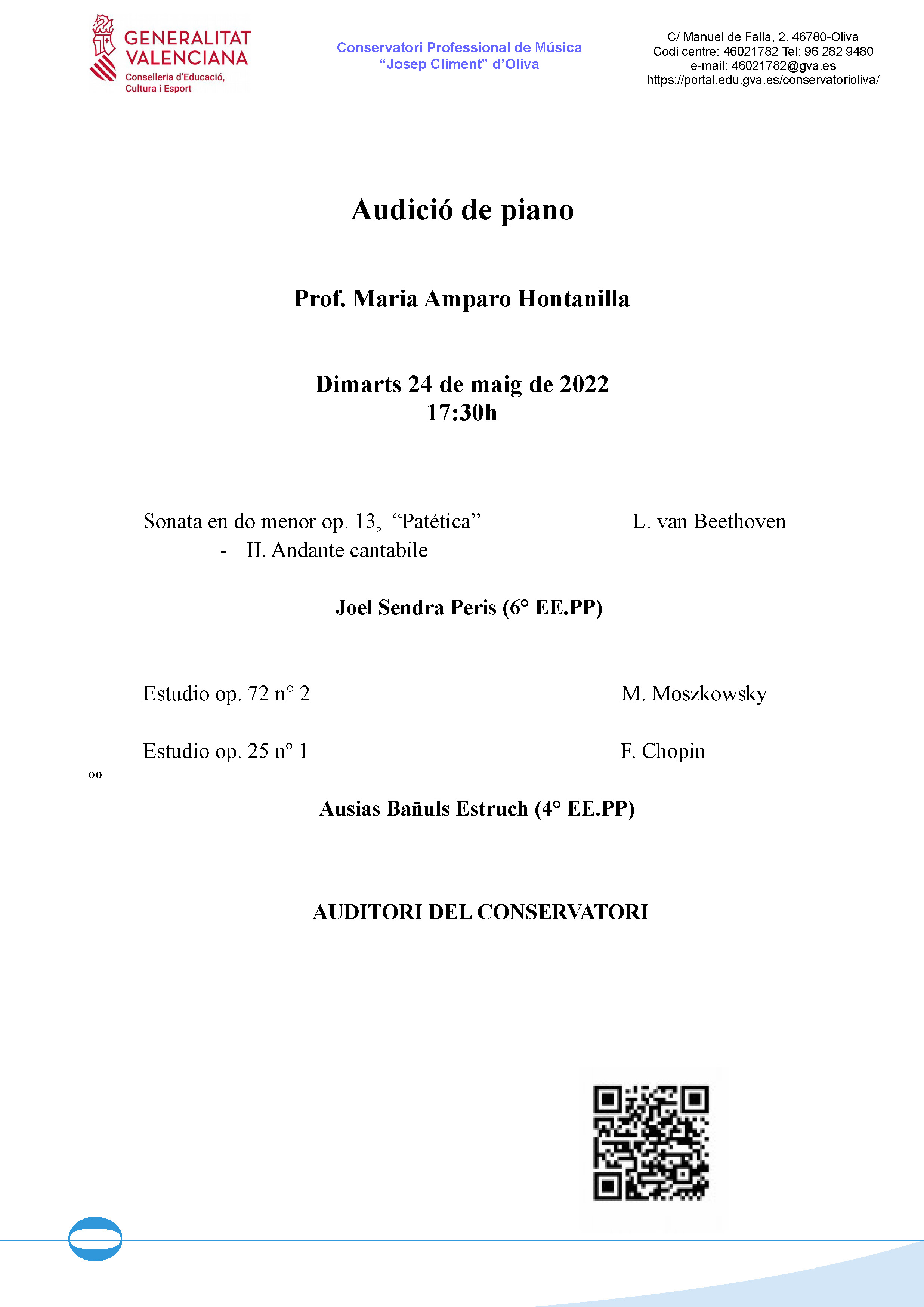 Audició de piano, 24.5.22, 17:30h