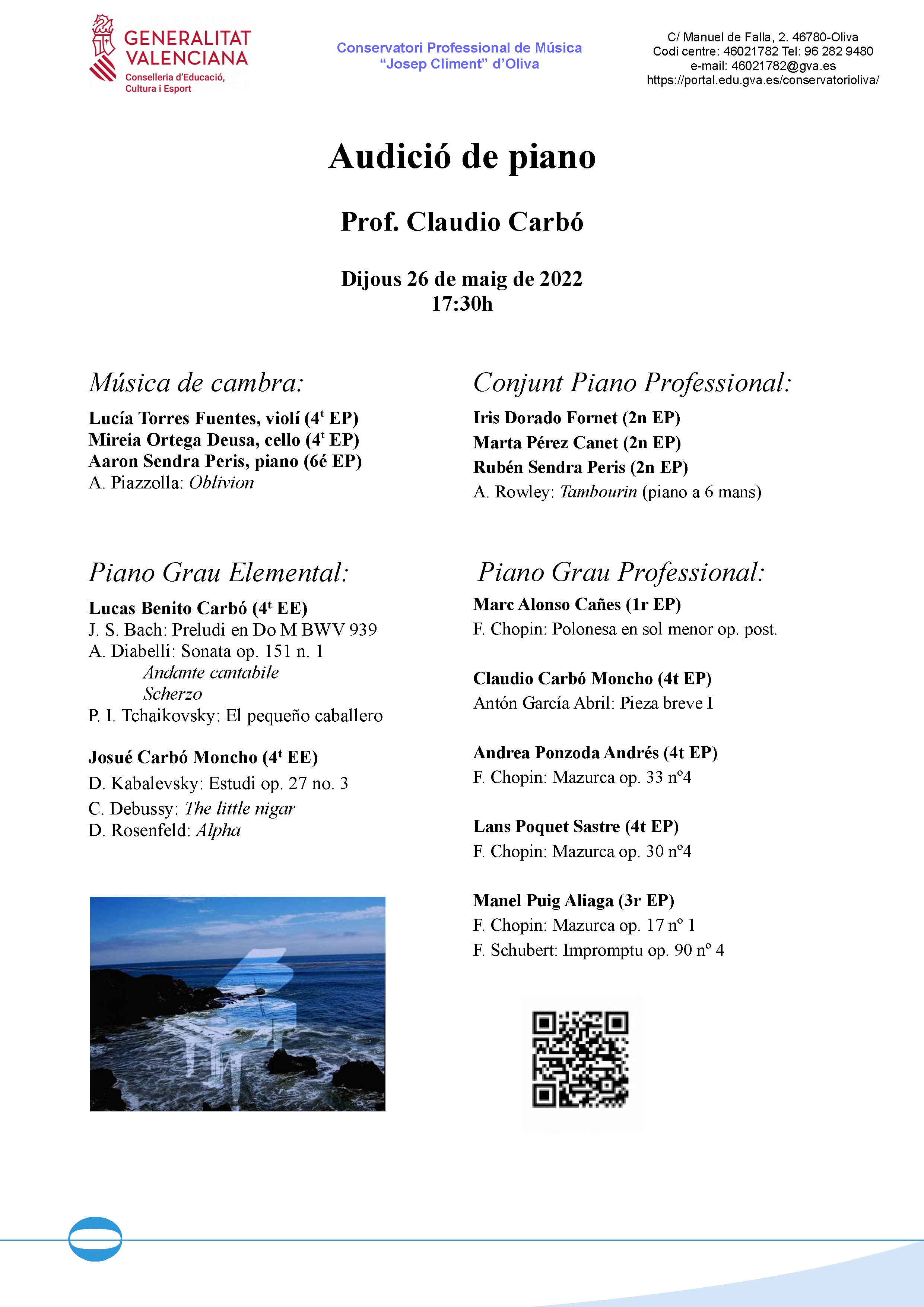 Audició de piano, 26.5.22, 17:30h.