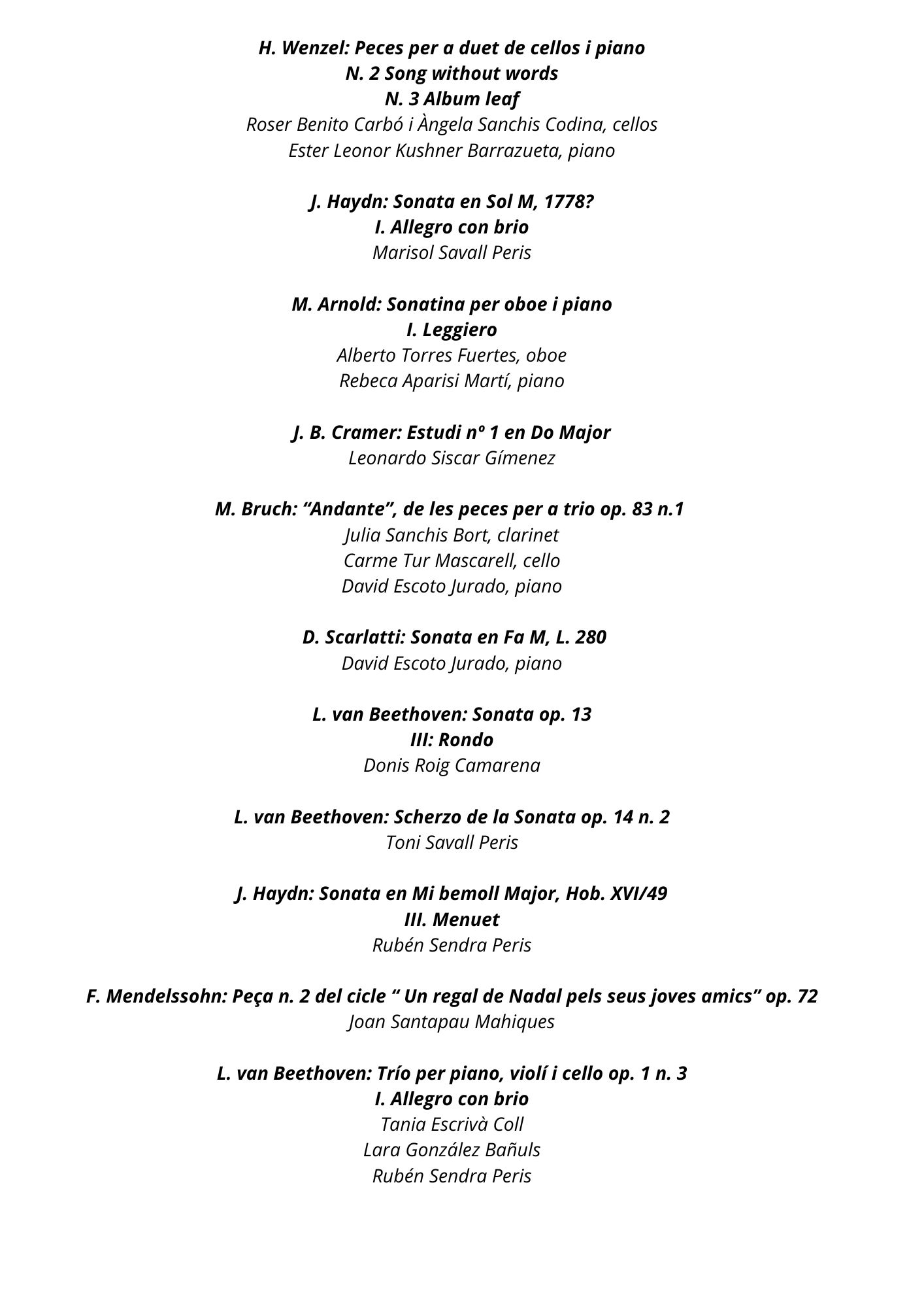 H. Wenzel: Peces per a duet de cellos i piano