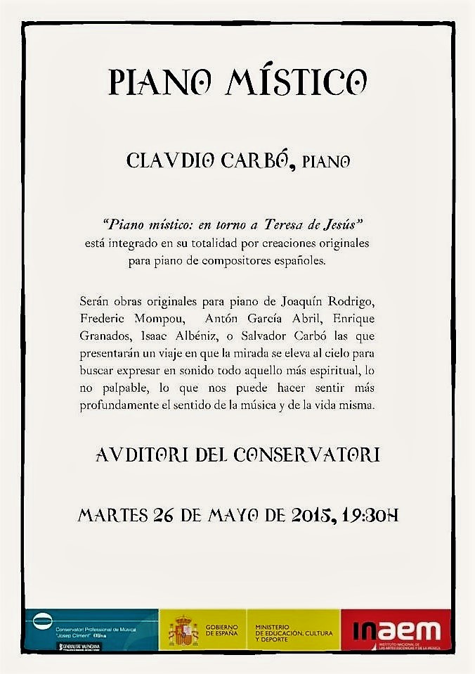«Piano místico: en torno a Teresa de Jesús», está integrado en su totalidad por creaciones originales para piano de compositores españoles.
